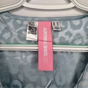 Add a touch of glam to your wardrobe with this Something New metallic wrap tie top! Featuring a shimmering silver-blue animal print, long sleeves, and a stylish wrap tie detail, this top is perfect for a night out, party, or festival look. The luxe satin-like fabric adds a chic touch, making it easy to dress up or down.
