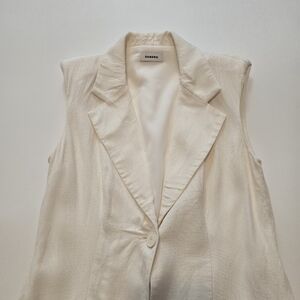 Off-White (Main: 100% Viscose; Lining: 100% Polyester; Under Collar: 100% Polyester; Secondary: 50% Polyester, 50% Viscose) Casual Dress. V-neck. Sleeveless. Front button closure.