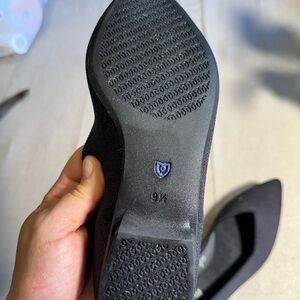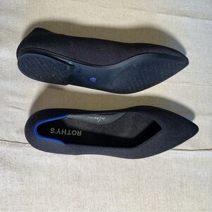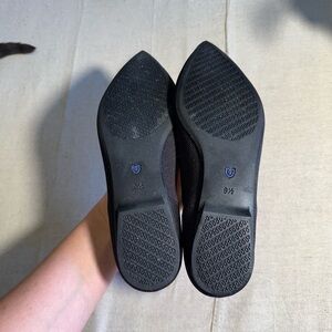 Chic black flats with a touch of blue. Sleek design for versatile wear. Comfortable and stylish.