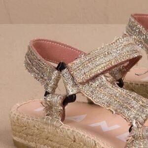 Manebi Women's Lurex Cotton Blend Hiking Sandal Espadrille Gold EU 38 US 8 NEW