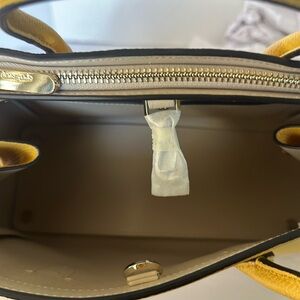 Add a pop of sunshine to any outfit with this vibrant Kate Spade New York Knott Medium Satchel. Crafted from luxurious pebbled leather in a cheerful lemon yellow hue, this versatile bag is perfect for everyday use or special occasions. The structured silhouette and zip-top closure keep your belongings secure, while the optional crossbody strap offers multiple carrying options.