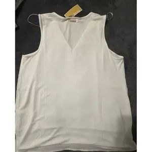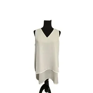 MICHAEL MICHAEL KORS Sleeveless Blouse Womens Size L White Flowy Layered Side Slits Chic Casual