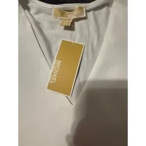 NWT MICHAEL KORS Womens Size L White Flowy Layered Side Slits Chic Casual Blouse