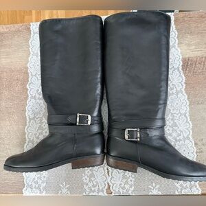 Beautiful, smooth, supple, black leather boots by Santana of Canada. Pull-on style. Vintage from the late nineties. They were samples acquired by my husband’s competitor company. I only wore a couple of times. 1” heel, 14.5” tall back, slightly taller in front. Buckle straps are removable. Warm, fuzzy interior. A good quality boot!