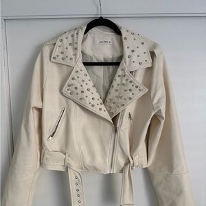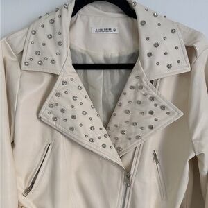 12th Tribe White Faux Leather Studded “Crazy In Love” Jacket