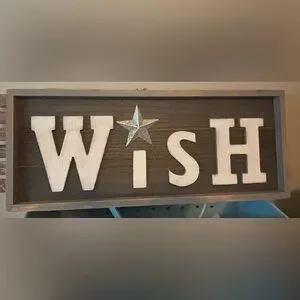 Add a touch of charm to your home with this 'Wish' wall art. Featuring a rustic brown and white design with a striking silver star, it's perfect for any room.