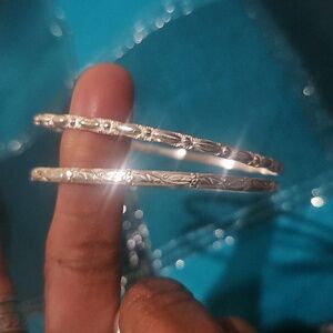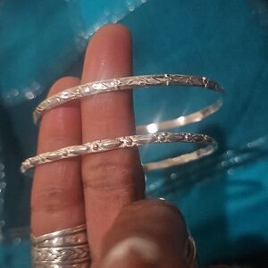 Elegant Sterling Silver Bangles Bracelets Set Of Two, Ladies Size 8