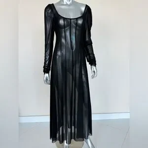 NWT!!! Anthropologie black sheer long dress size M Retail 118$