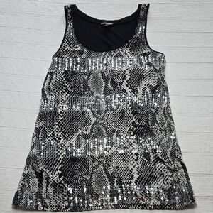 Make a shimmering statement with this bold Express snakeskin sequin tank!