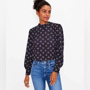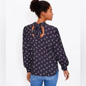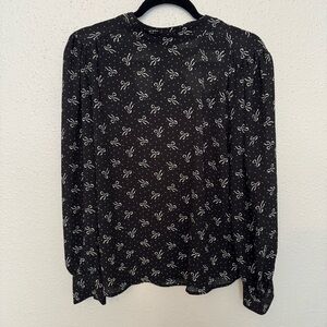 LOFT Bow Tie Back Blouse Long Sleeve Pullover Black & White Sz. SMALL. A bit sheer, so would recommend wearing a tank underneath. Top is super cute and can be worn up or down. Love love love the bows. In excellent condition, no flaws noted.