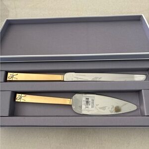 Vera Wang Love Knots Gold Cake Knife and Server NWT. Bought for our wedding and never ended up using. Very pretty gold and silver with delicate bow on ends. Will carefully package.
