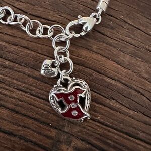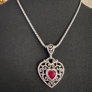 Brighton produced a special, limited-edition "Go Red for Women" collection of jewelry to raise awareness for heart health, in partnership with the American Heart Association. The necklace from this collection features a heart-shaped pendant with a red accent.