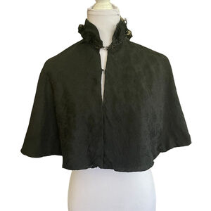 Antique black Victorian to Edwardian mourning capelet with feather accent & beading around the collar. Hook & eye closure