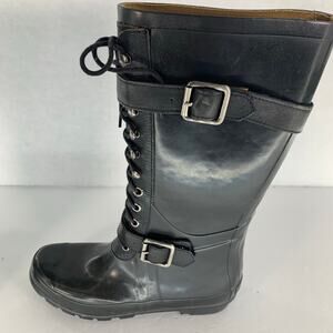 BCBG MaxAzria Willis Black Rubber Mid-Calf Lace-Up Rain Boots Size 7B