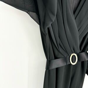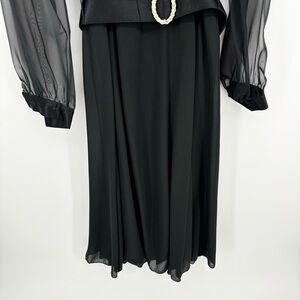 Vintage 80s Ursula Of Switzerland Black Midi Dress Size 8 Rhinestone Belt Sheer
