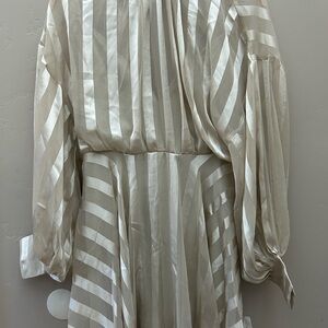 This elegant cream blouse features stylish balloon sleeves and a chic high neckline. Perfect for any occasion, it adds a touch of sophistication to your wardrobe.