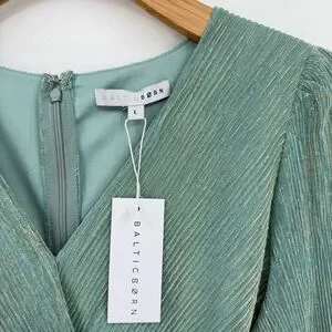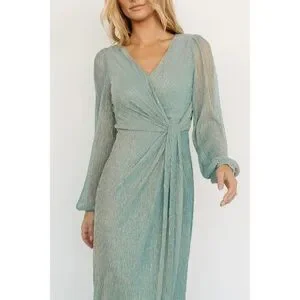 Baltic Born Devlyn Pleated Dress in Blue Sage Shimmer Size L
