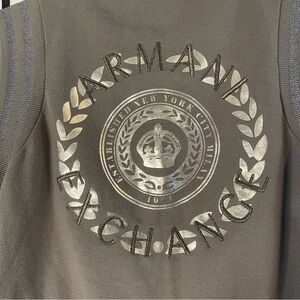 Chic gray jacket with knit collar with silver accents. Features Armani Exchange branding embroidered on the back.