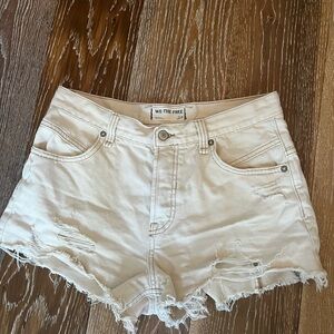 FREE PEOPLE NOW OR NEVER DENIM SHORTS IN ECRU