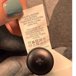 Keywords: Lucky Brand blazer, women's knit jacket, gray blazer, contrasting trim, single button blazer, smart casual, office wear, layering piece, preppy, minimalist, versatile, business casual