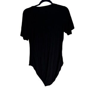 Free People Black Deep V Neck Short Sleeve Thong Bodysuit L Made in USA