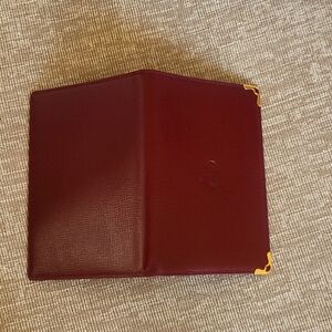 Elegant Cartier wallet in rich burgundy leather. Perfect for adding a touch of luxury to your everyday essentials. Beautiful brand new in the original wrapping cloth, box, and authenticity card from Cartier.. never will find this beauty brand new!!