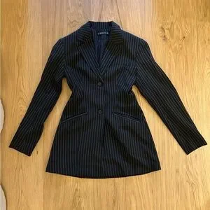 Sophisticated navy blazer dress with pinstripe design. Ideal for both work and casual wear.
