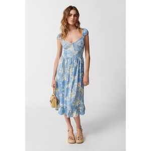 NWT Urban Outfitters Elenor Midi Dress Blue Cream Floral