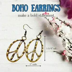 Peace sign hippie earrings hippy accessories bronze tone bohemian retro jewelry
