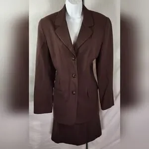 Vintage Talbots Brown Wool Skirt Suit – Classic Careerwear Set – Size 8