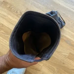 The Erin Buckle Riding Boot is a round toe pebbled leather boot with a buckled strap across front. Stacked 1" heel. Leather lined, leather insole and leather sole. Pull on style.