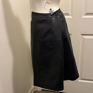 NEW W/ Tag Halogen Black A-Line Real Leather Skirt, Fully Lined, Sz 10, MSRP 248