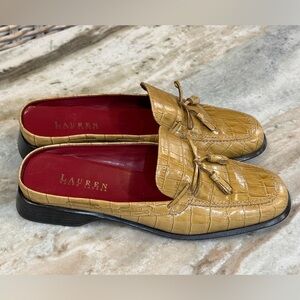 Women’s LAUREN RALPH LAUREN Lisette Alligator leather tasseled mules- Size 8.5 . Excellent condition, like new. Little to no signs of wear. No flaws noted. See all photos. Smoke free home. Fast shipping!