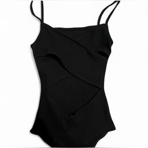 Lulus Ribbed Crisscross Back Square Neck Black Bodysuit