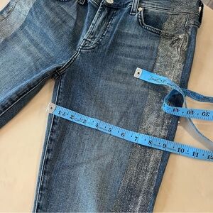 7 For All Mankind Women’s Size 29 Jeans Glitter Tuxedo Side Stripe Skinny Stretch Denim. Medium Wash, Zip Fly, Button Closure. Excellent Condition, No Flaws. See Photos For Approx. Measurements.