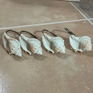 Enhance your bathroom decor with this charming set of seashell and starfish shower curtain hooks and shower curtain! Featuring a soothing cream and tan color palette, these hooks add a touch of coastal elegance to your space. Perfect for beach-themed bathrooms.