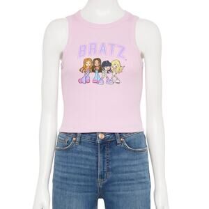 Bratz Y2K High Neck Pink Ribbed Graphic Tank Top Size XS