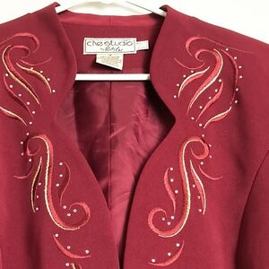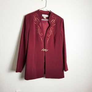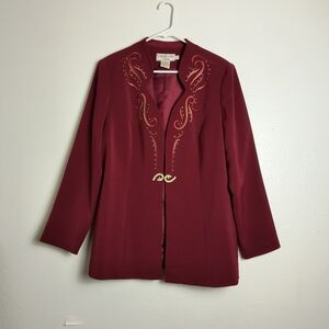 Embellished Red Blazer Women's Size 16 Tall Office Career Vintage Y2K Elegant