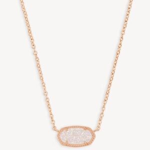 Classic Kendra Scott 14k rose gold (over brass) iridescent white drusy pendant necklace, currently still sold by Kendra Scott (for $75)