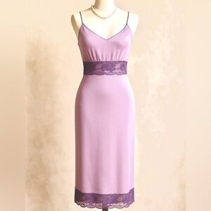 RARE! VTG Miguelina,Velvetsoft Crocheted Midi, in soft amethyst hues Dress, Gorgeous, perfect Crochet Trim 90s/Y2K,Size S Vintage Miguelina Purple Crochet Trim Slip Dress Midi 90s Y2K Small, Vintage Miguelina Designer Slip