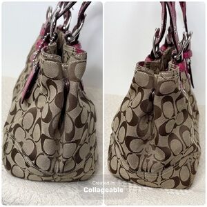 Y2K Coach Soho Signature Zip Satchel 11863 Khaki Berry Pink Shoulder Tote Bag