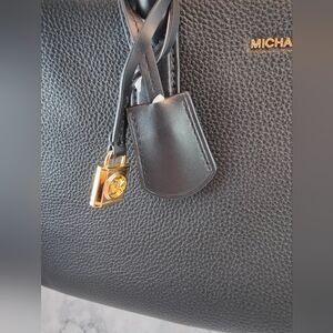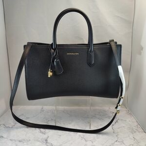 Michael Kors Scarlett Medium East/West Satchel Black Leather Gold HW