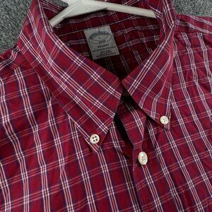 Brooks Brothers Button Up Shirt Men Long Sleeve Cotton Regent Large Red Plaid