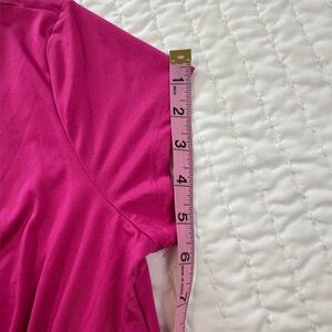 Chic fuchsia blouse with a flattering V-neck. Ideal for versatile styling.