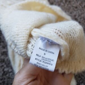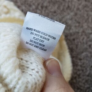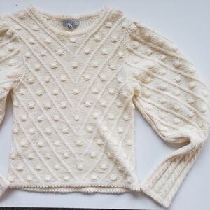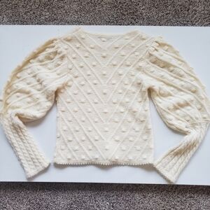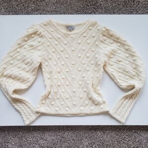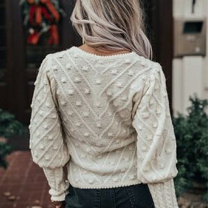 FavLux Fashion Cream Bobble Popcorn V Knit Crewneck Sweater Bishop Sleeves