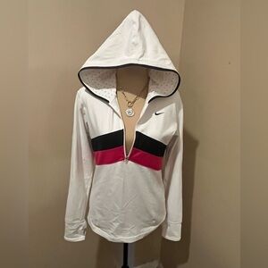 Nike 1/2 Zip White Hoodie with Black and Magenta Accents, size Medium