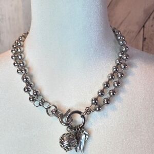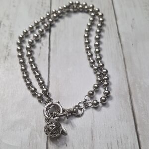This elegant silver beaded necklace adds a touch of sophistication to any outfit. Perfect for any occasion. Stainless steel.