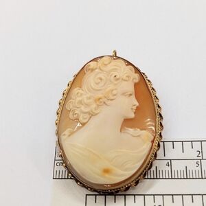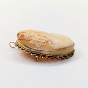 Vintage 10k Genuine Carved Cameo Brooch Pendant