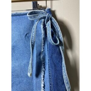 BDG Urban Outfitters Patchwork Denim Wrap Mini Skirt Blue Size S Raw Hem Pocket