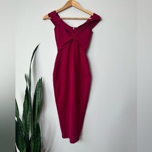 NOOKIE Dolly midi off the shoulder dress in ruby XS NWT